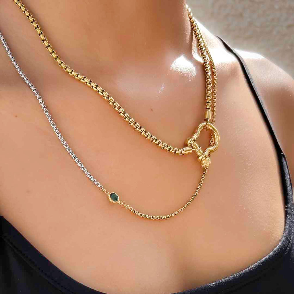 22" Mixed Metal Chain with Emerald Stone